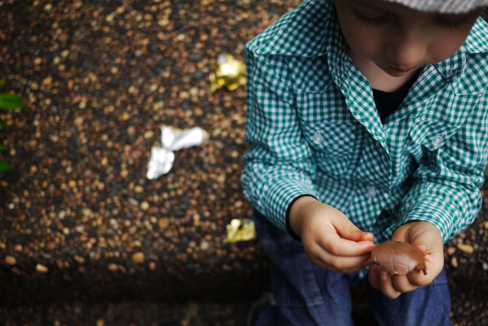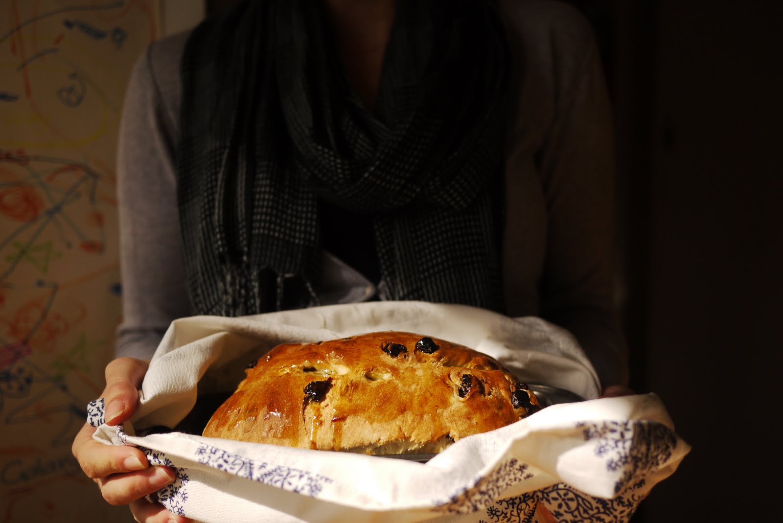 We rose early, to the excited squeals of the little one who found mini chocolate eggs scattered on the rug. Then we spent the day painting and hunting them and came home with a big bag of chocolate loot. And I’m wondering how on earth we are going to eat them all. Che and I made raisin bread too – sweetened with two tablespoons of marmalade jam. Highly recommended, the recipe can be found in this fabulous book.