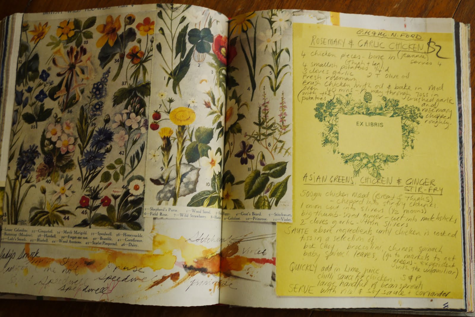 Jodi: Keepsakes began as a present for a loved one. When did it become a book? Frances: I made the book over three months; Sept, Oct & Nov of last year. The original version was made three years ago, as a wedding gift for my youngest sister, Fleur Wood who is a fashion designer based in Sydney, I really wanted to give her something special and meaningful as a gift. She loves to cook and my sisters and I are often asking each if we remember a particular family recipe, I also thought it would be a great opportunity to compile all our family favourites, some of my own mostly vegetarian inventions as well as family photos, images of my artwork and other quirky images and inspiration for her. Jodi: How do you think cooking and art are similar? Frances: Good Question!They are surprising similar…. my version of a good cook is someone who can create something out of nothing, substitute ingredients if they don’t have something in their pantry or a cook who is inventive and creative when it comes to planning a meal. My art making process is very similar, I recently had an exhibition at Sydneys’ First Draft Gallery, the title of the show was Nothing but Something, the accompanying essay was a discussion around the idea of Gleaning, which is traditionally a food / left over crop gathering activity. Currently I am making large paintings of puddings, this is a direct response to publishing a book about food, I am having heaps of fun painting images of large milky puddings such as Blancmange and Junket, I am just planning a painting based on a 1950’s dessert called Raspberry fool. I don’t normally make images of food! Although often my work is concerned with the domestic, my most recent exhibition at Snowwhite, a gallery here in Auckland , was entitled Home & Contents. The work included paintings, embroidery on face cloths, found headboards and a grid of stretched nets and aprons, probably a little difficult to visualise, but the work was a celebration of the DIY mentality, something Kiwis excell at. Jodi: As a mum of two children, how important is cooking in your home? Frances: Well, I cook dinner most nights! I have a very productive vegetable garden so that is the challenge for me, whatever is happening in the garden determines what is on the table. We have a new crop of rhubarb, so I’m cooking with that right now, stewed with homemade muesli. Having younger children has been limiting in terms of cooking, not when it comes to creating birthday cakes, but more the typical dinner, as I work full time, I get lazy and make kid food, although I enjoy the challenge of ramping this up into more exciting adult type food with the addition of a few ingredients, secret herbs and spices…. Jodi: Keepsakes has pride of place on my kitchen table at the moment and it seems to easily attract the eyes of neighbours and visitors. How does it feel to have such a personal scrapbook of history and creativity on the kitchen tables of strangers? Frances: The original version was way more scrappy, rough and personal, particularly with family photographs, so a certain amount of editing went on when I made the new version. Having said that my publisher made the decision to not edit the pages at all so the book has all these spelling mistakes and other grammatical errors, which would be present in the average persons scrapbook of recipes, (at least I like to think this is the case). My favourite mistake is where have written Golden Sydney instead of Golden Syrup, I think I was about 17 when I wrote that one out and had just moved there. Overall I feel really happy with Keepsakes, my family and friends who contributed are all delighted to be part of it, it was a pleasure to make, one of those moments where everything works out effortlessly. I actually felt sad when I realised I had completed the last page. It is a little strange to see your personal keepsakes published, but I do think many people have similar family keepsakes of their own and can relate to the material easily. Jodi: What are your hopes for Keepsakes? That it inspires others to make their own. I inhertited my godmother’s recipe book and it is much more than just a recipe book to me, it speaks so strongly of her personality, and brings back fond memories of her. It was so special to make pages centred around her and her recipes. Jodi: Any plans for another book? Frances: Absolutely