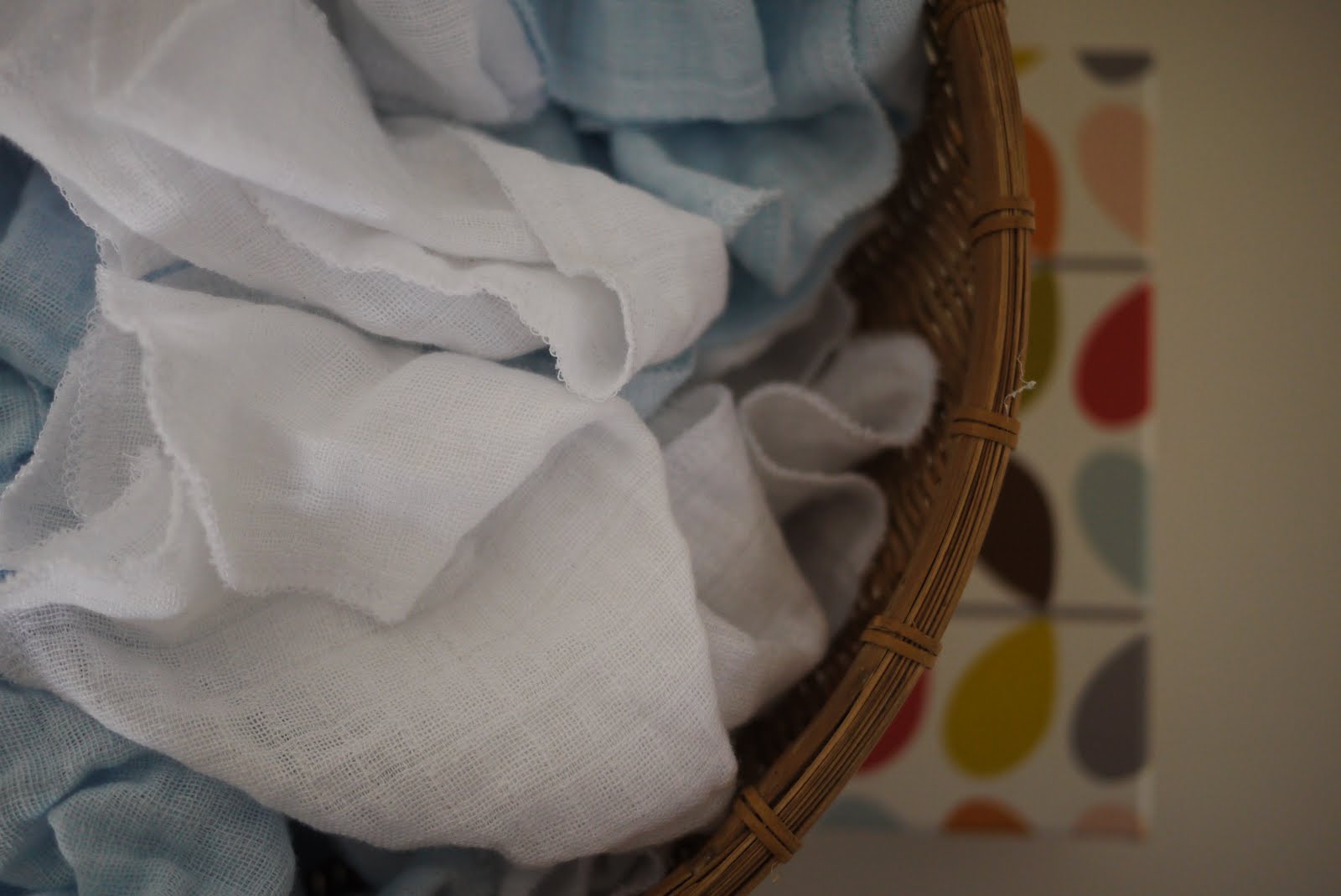 My mum found an old basket on the side of the road, lined it in stripes and I filled it with wraps and blankets. My auntie made a basket full of muslin burp cloths -the greatest baby accessory ever. When Che was little we had them all over the house to literally catch the spew. They’re gentle on skin, easy to wash and they last and last and last.